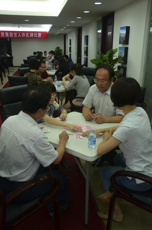 9月15日下昼,,,,,,,以增强交流、增进友谊、振奋精神、增进企业协调生长为宗旨的农房集团百人扑克牌角逐在集团总部拉开帷幕。。。。。。。本次角逐共设八十分、大怪路子、斗田主三个项目,,,,,,,农房员工100多人加入角逐。。。。。。。纽约国际官网食物集团党委副书记、工会主席周海鸣,,,,,,,副主席韩新胜、姜伟及纽约国际官网食物集团十余员工应邀与农房员工同台竞技,,,,,,,配合角逐。。。。。。。农房集团党委副书记、工会主席黄克铨主持角逐。。。。。。。